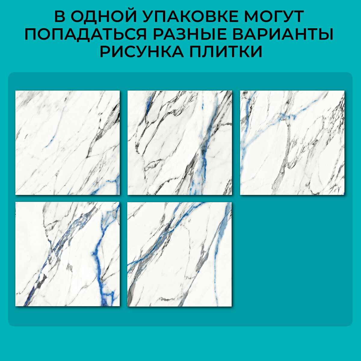 Купить Стеновая панель ПВХ "Мрамор Голубой", 59,5x59,5см, 4 шт.