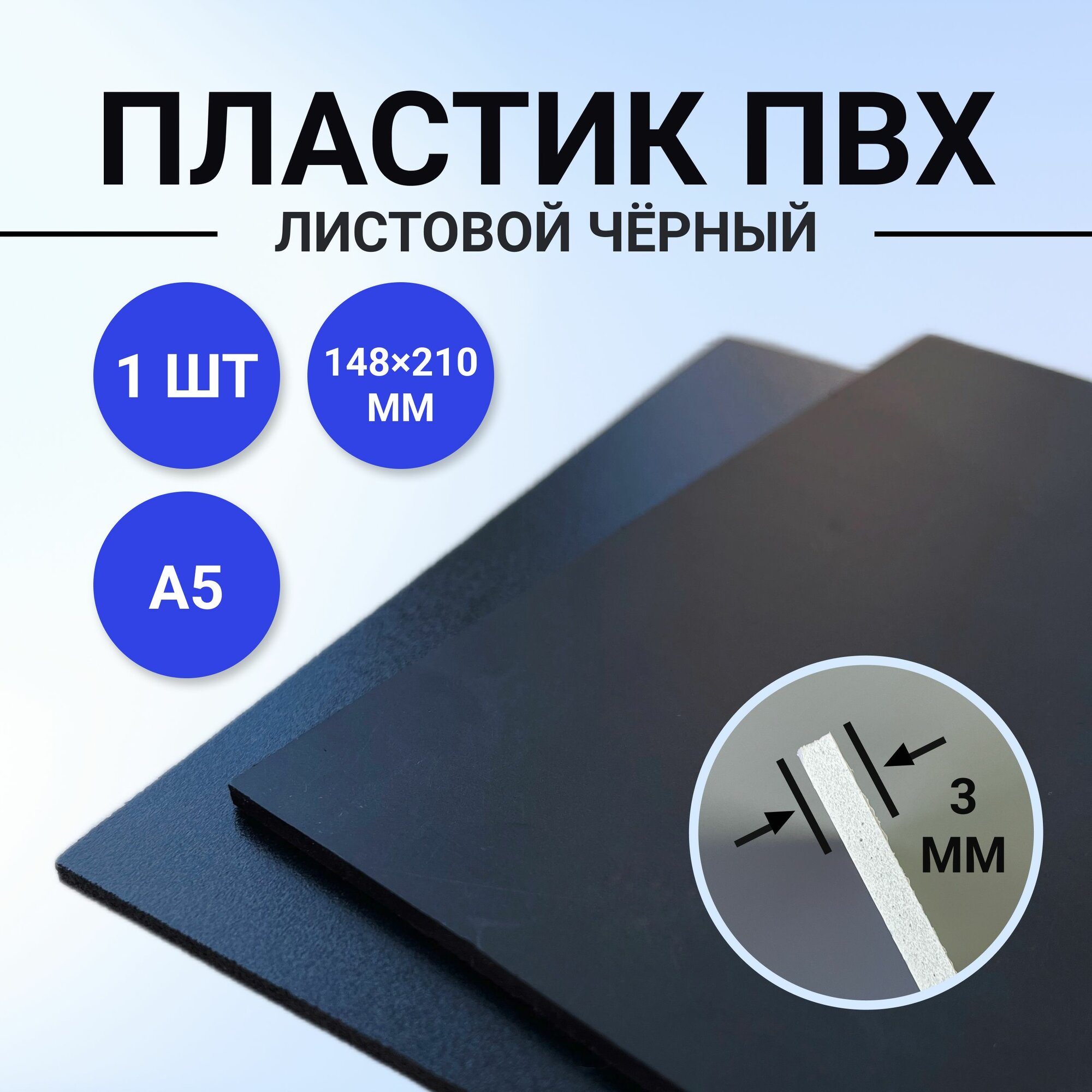 Купить Пластик листовой черный, размер А5 148х210 мм, ПВХ пластик 1 лист толщиной 3 мм. для моделирования и творчества