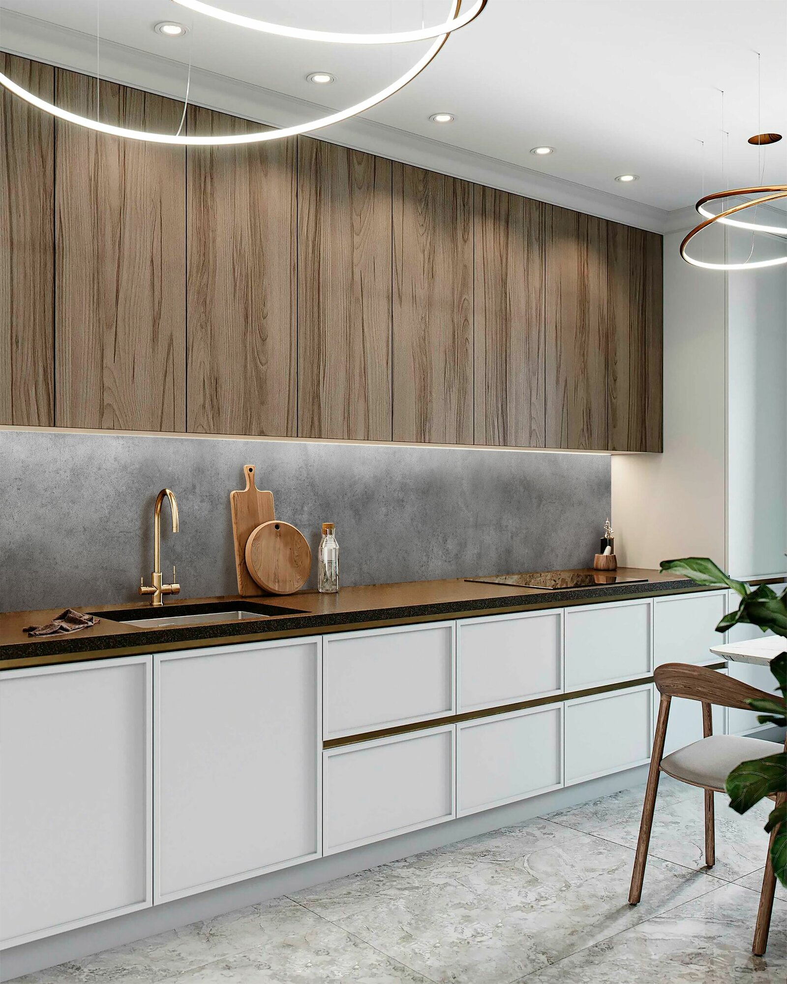 Фартук для кухни на стену 3000х600 мм, полуглянцевый Тиберия. Панель стеновая ПВХ влагостойкая декоративная