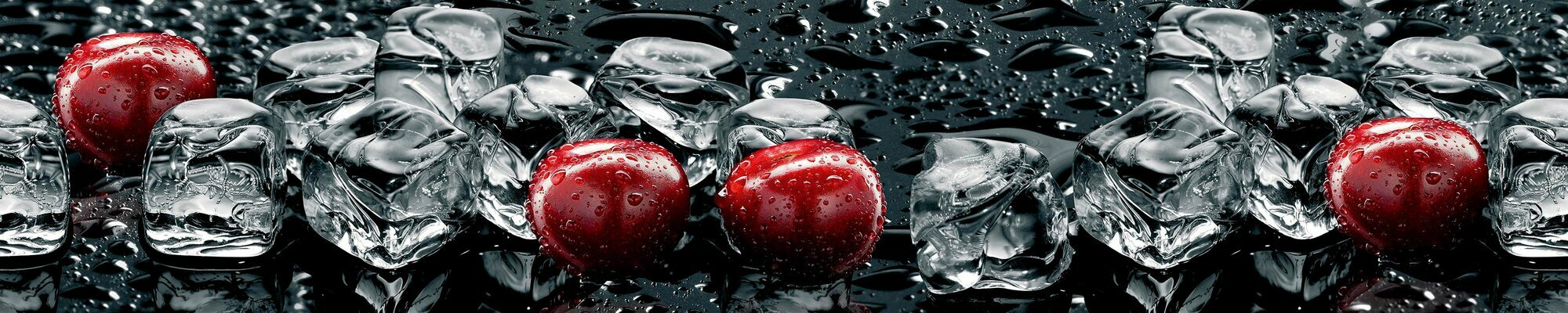 Фартук для кухни на стену 3000х600 мм, глянцевый Лед и вишня. Панель стеновая ПВХ влагостойкая декоративная