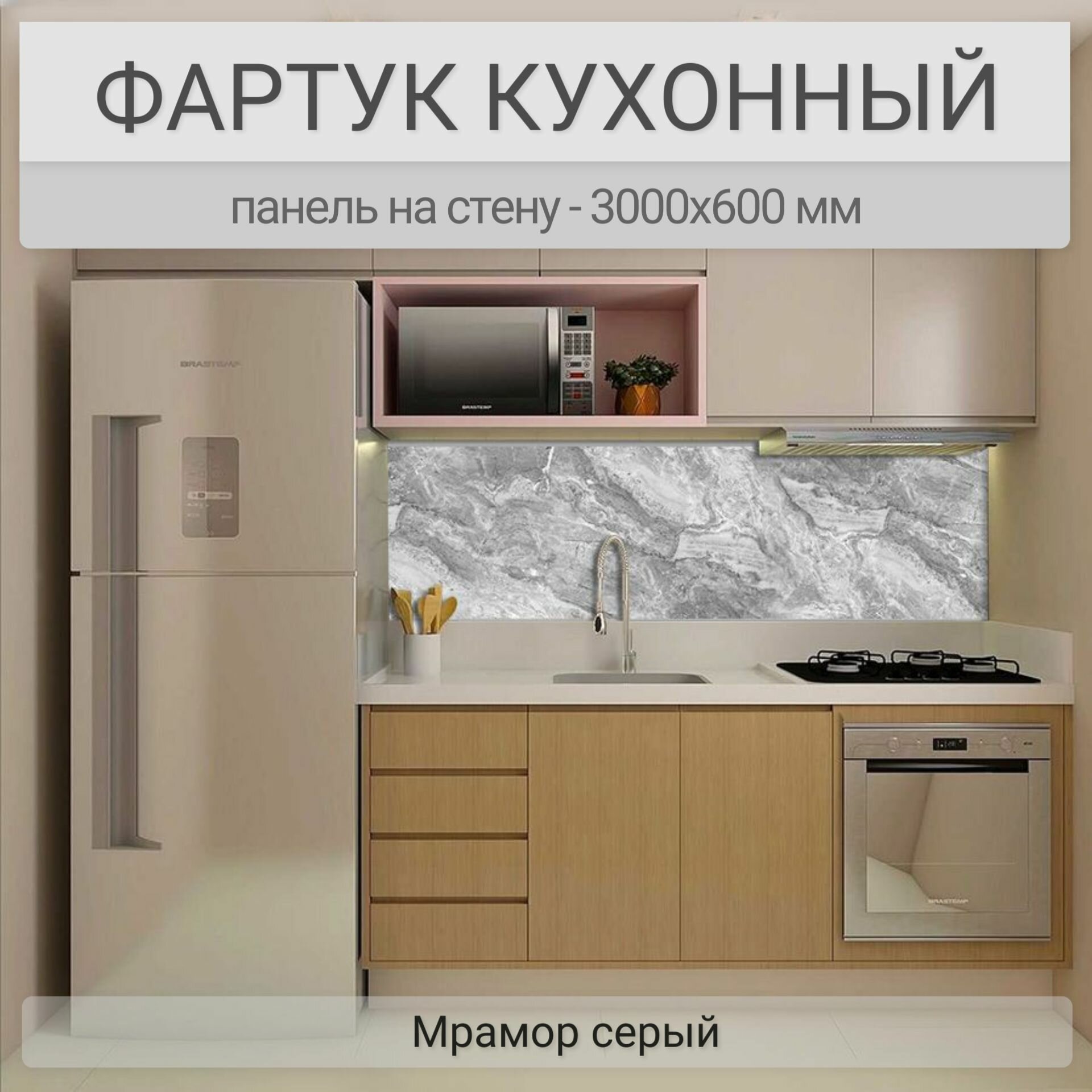 СохранитьФартук для кухни на стену 3000х600 мм, Мрамор серый. Панель стеновая ПВХ влагостойкая декоративная интересное: