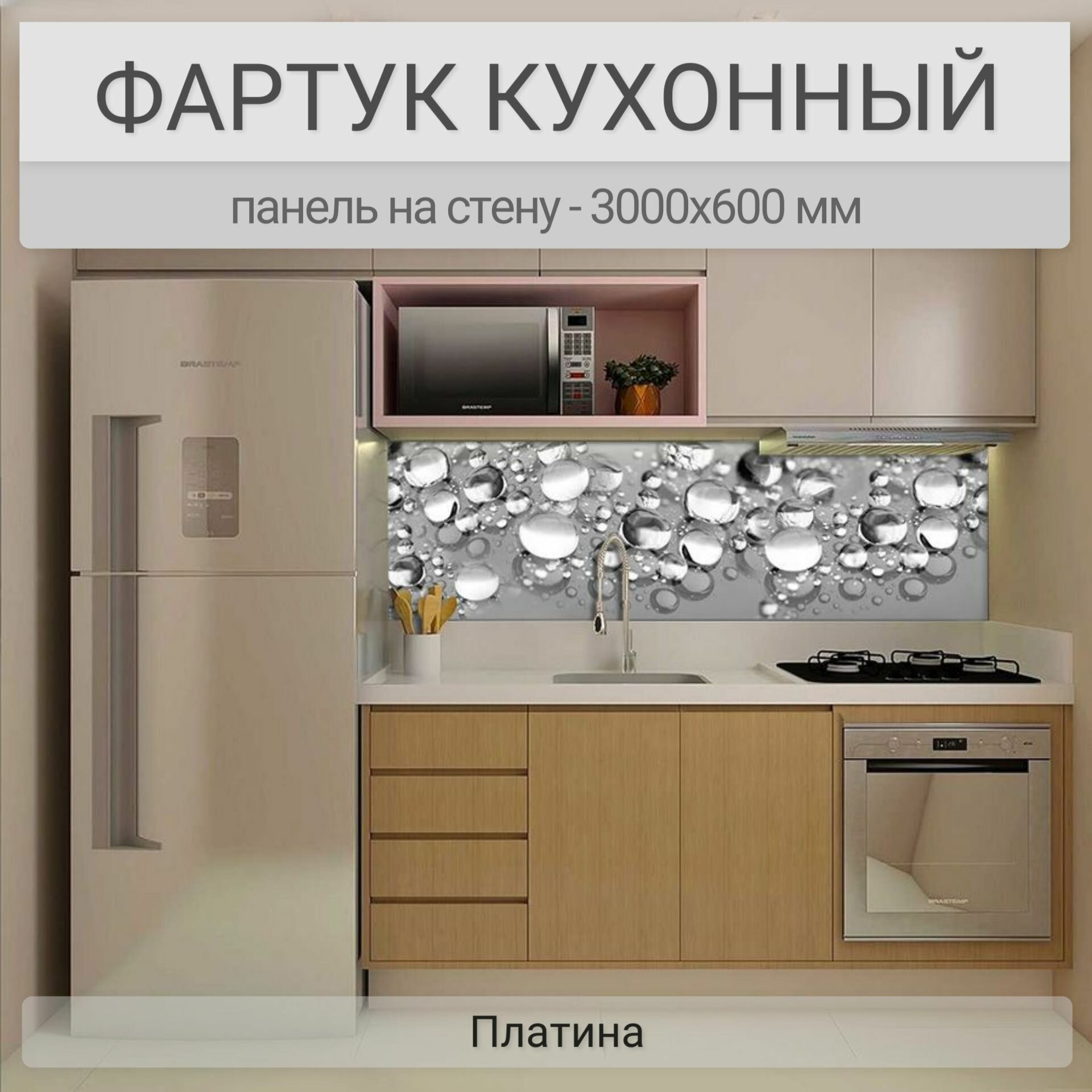 СохранитьФартук для кухни на стену 3000х600 мм, Платина. Панель стеновая ПВХ влагостойкая декоративная интересное: