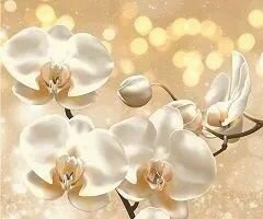 Фартук для кухни на стену 3000х600 мм, глянцевый Молочная орхидея. Панель стеновая ПВХ влагостойкая декоративная