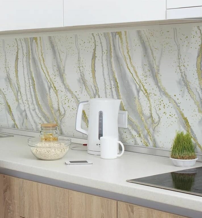 Фартук для кухни на стену 3000х600 мм, глянцевый Платина. Панель стеновая ПВХ влагостойкая декоративная