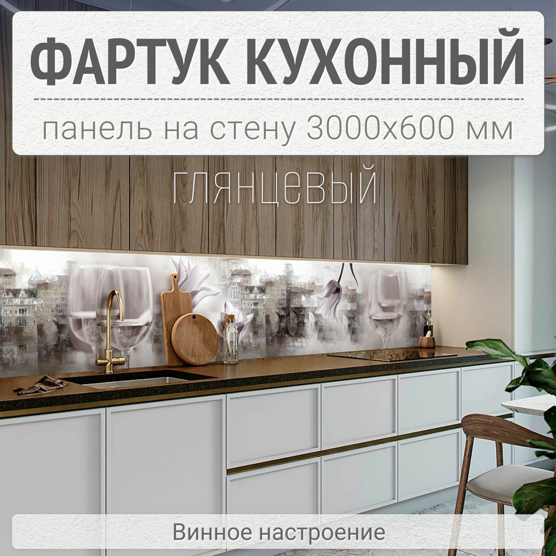 Фартук для кухни на стену 3000х600 мм, глянцевый Винное настроение. Панель стеновая ПВХ влагостойкая декоративная