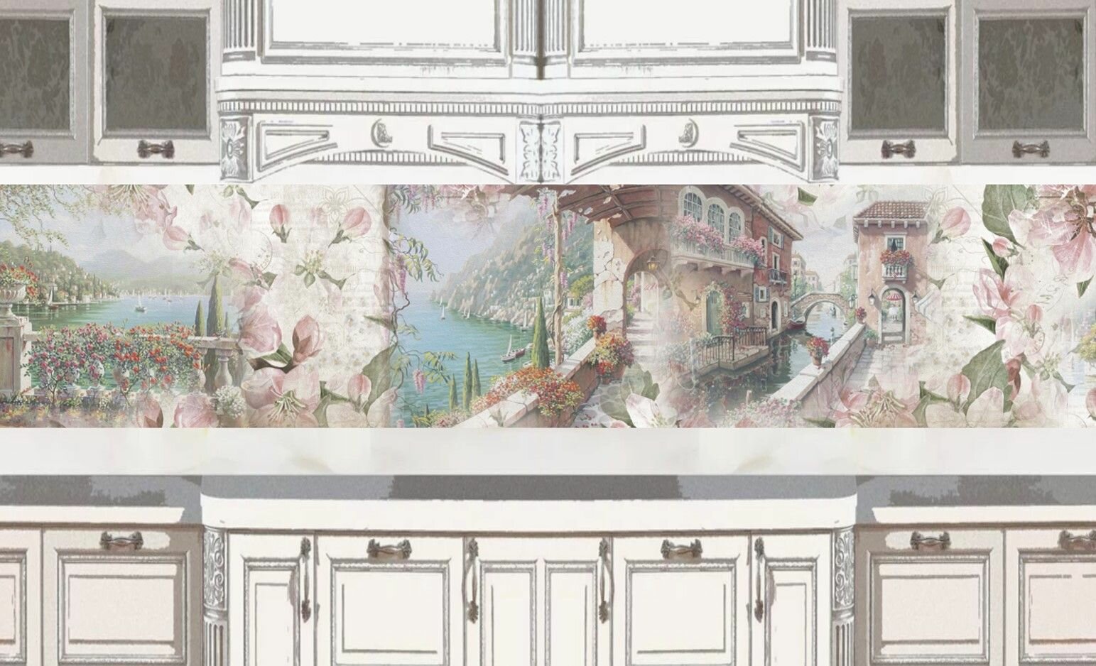 Фартук для кухни на стену 3000х600 мм, глянцевый Идиллия. Панель стеновая ПВХ влагостойкая декоративная