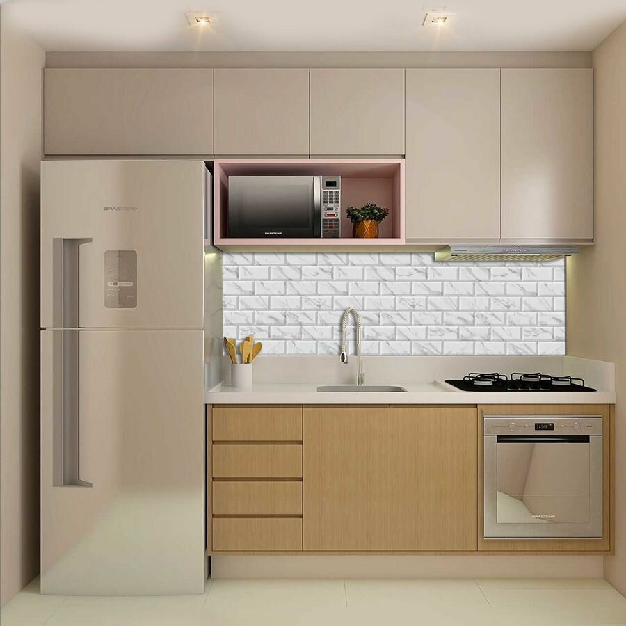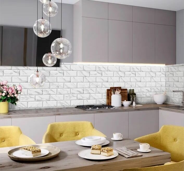 Фартук для кухни на стену 3000х600 мм, полуглянцевый Плитка Метро. Панель стеновая ПВХ влагостойкая декоративная