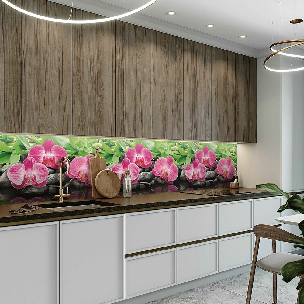 СохранитьФартук для кухни на стену 3000х600 мм, Орхидеи. Панель стеновая ПВХ влагостойкая декоративная интересное: