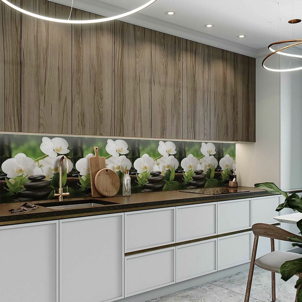 СохранитьФартук для кухни на стену 3000х600 мм, Белая орхидея. Панель стеновая ПВХ влагостойкая декоративная интересное: