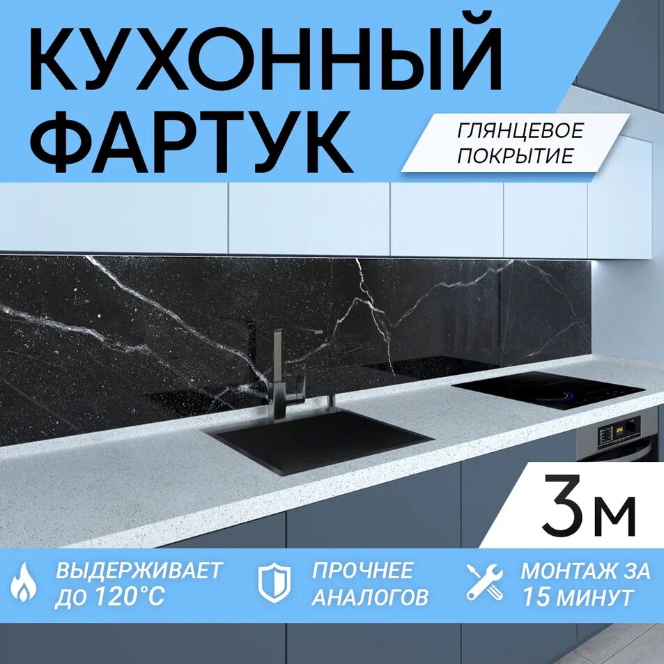 Фартук кухонный на стену "Мрамор ФФ464", глянцевое покрытие, 3000*600*1 мм