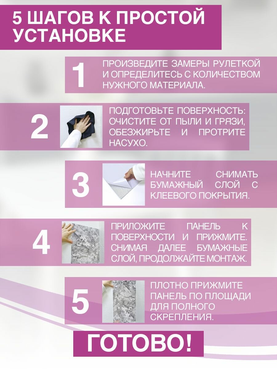 Самоклеящиеся панели ПВХ. Плитка для стен. Серые 6 шт