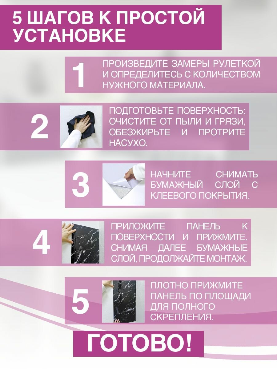 Самоклеящиеся панели ПВХ. Плитка для стен. Чёрный камень 6 шт