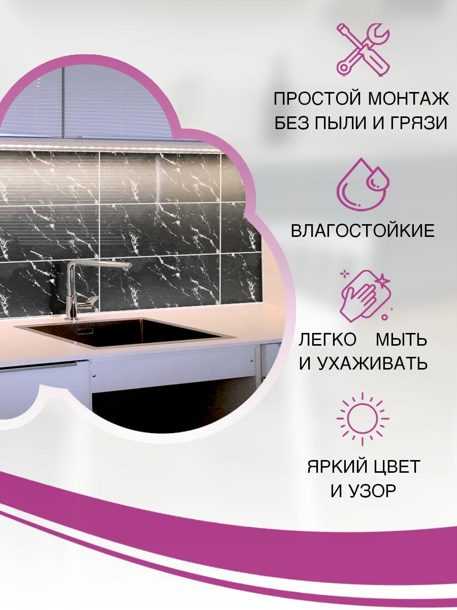 Самоклеящиеся панели ПВХ. Плитка для стен. Бело-черный мрамор 6 шт