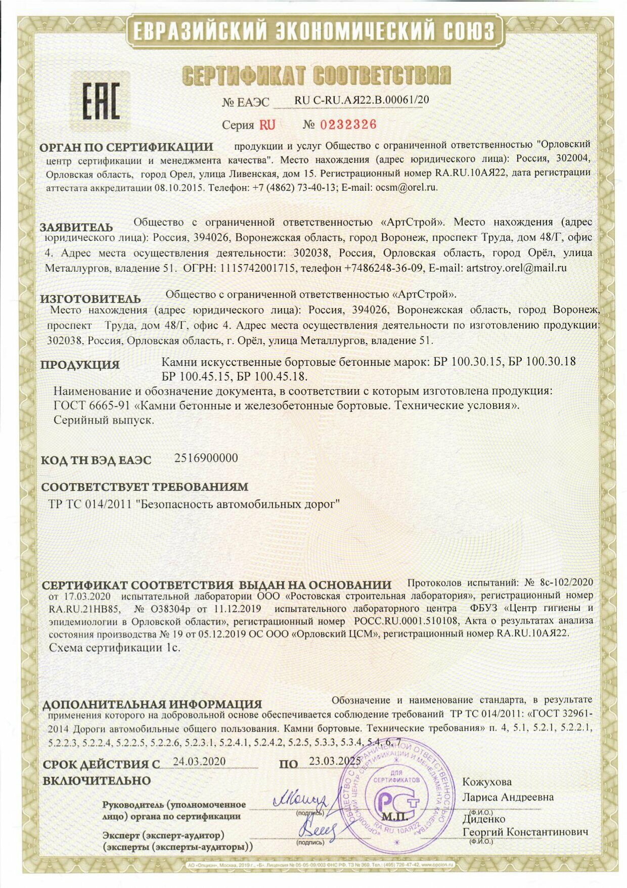 | Дополнительная информация | Имеет сертификат соответствия Евразийского экономического союза. Отгрузка дорожного бордюра производится поддонами. В поддоне: 15 погонных метров |