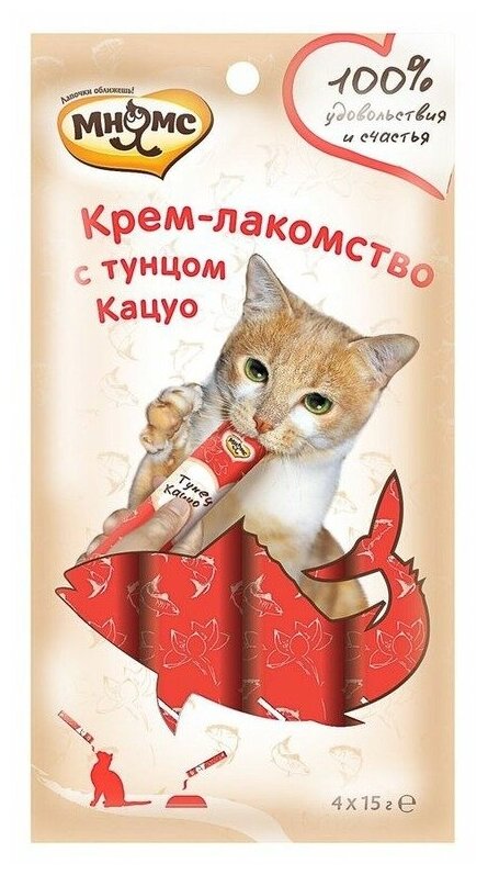Мнямс, Крем-лакомство для кошек с тунцом Кацуо 15г х 4 штуки