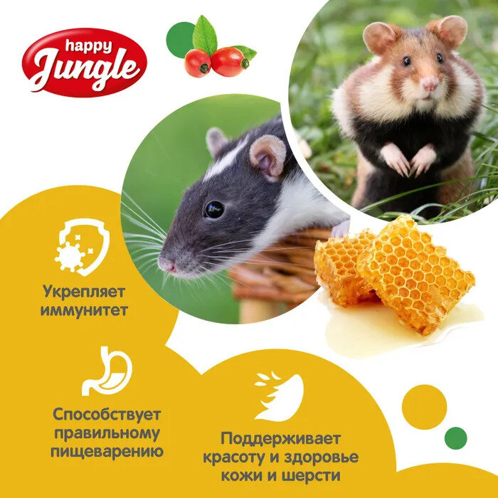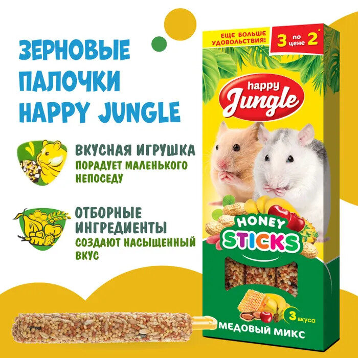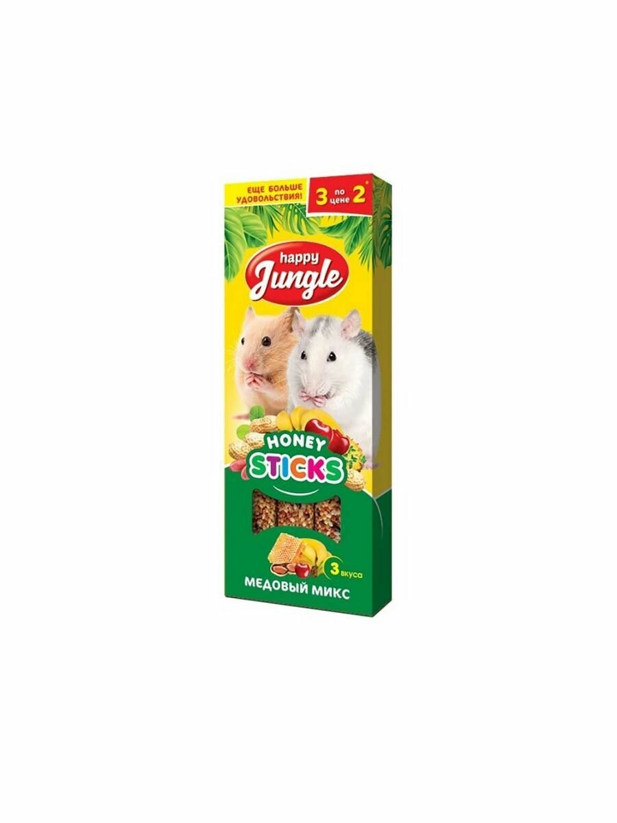 Лакомство для грызунов Happy Jungle / Хэппи Джангл Палочки медовый микс 90г, в упаковке 3шт. / корм для животных