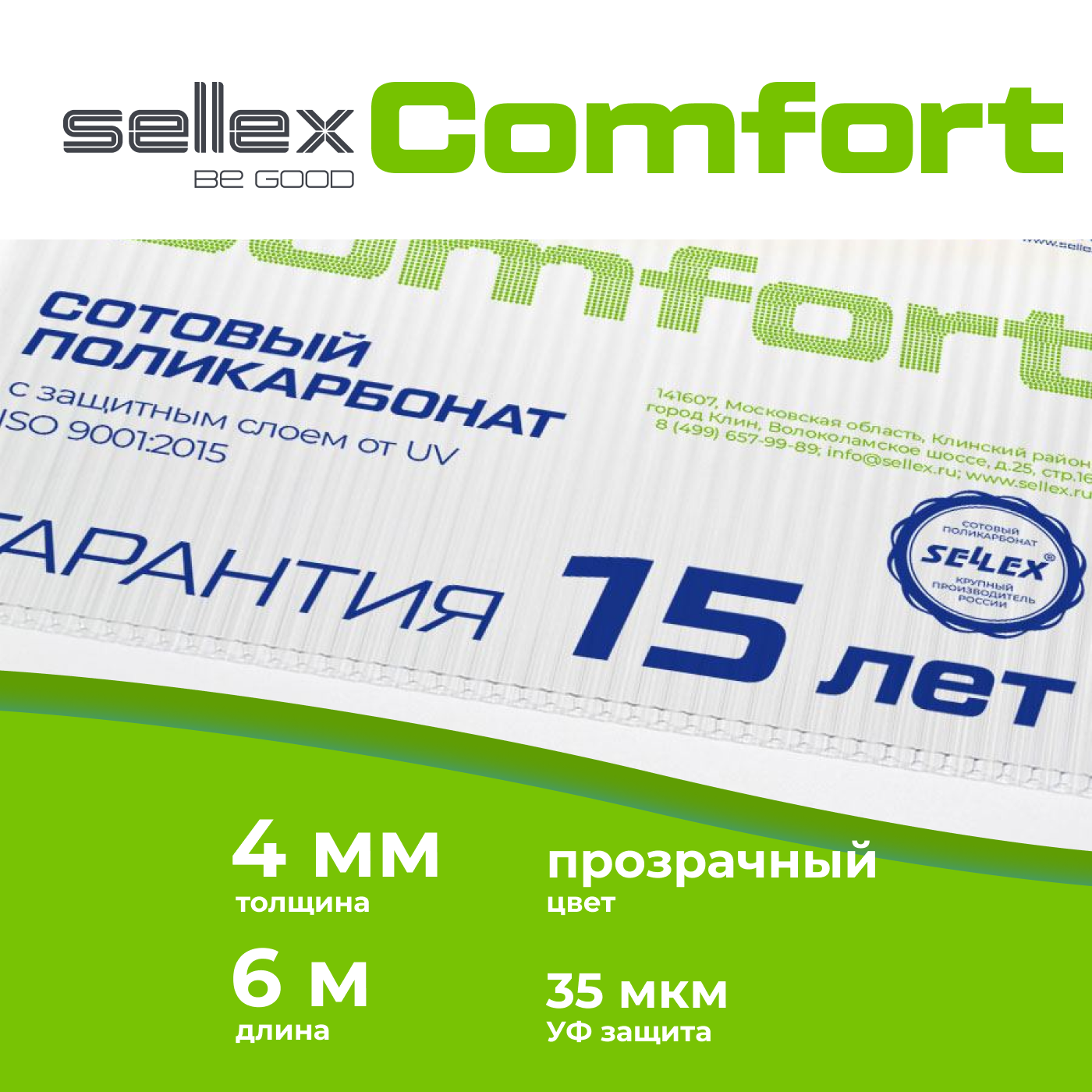 4 мм прозрачный сотовый поликарбонат Sellex Comfort гарантия 15 лет, длина 6 метров интересное: