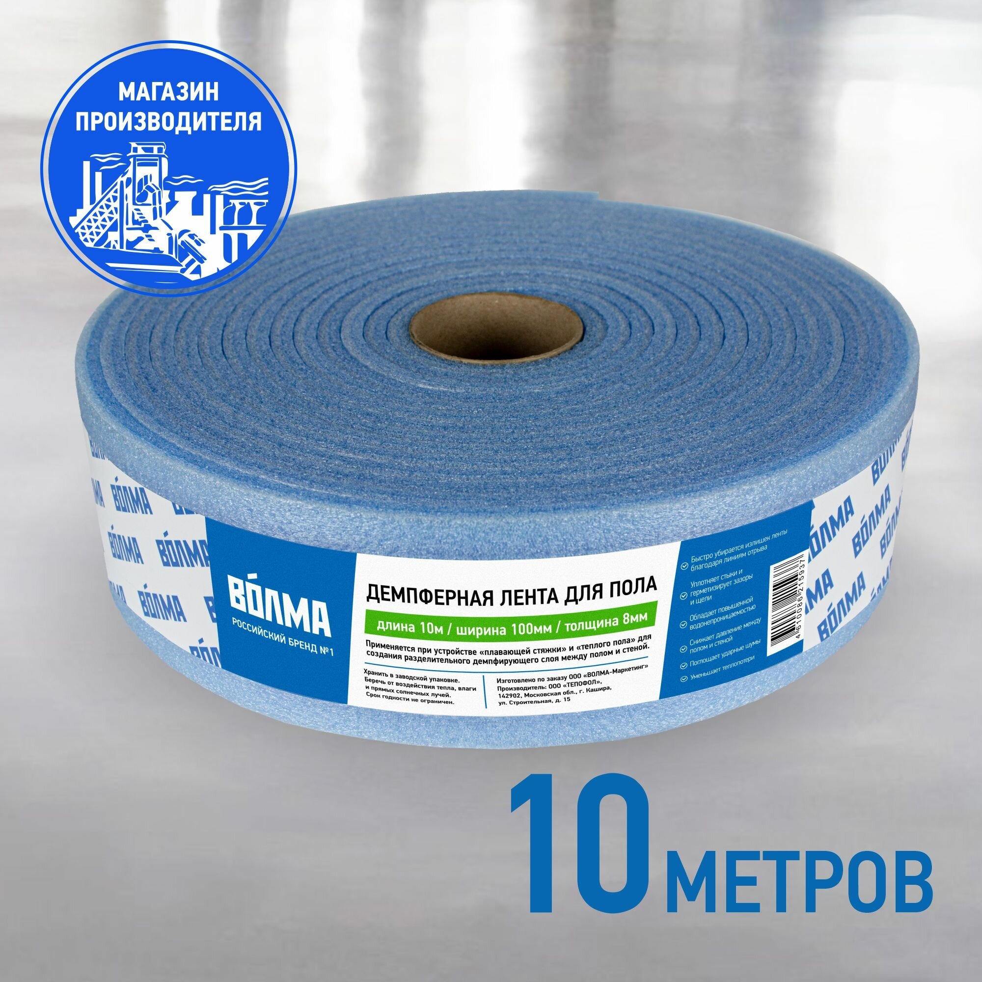 Демпферная лента волма 100мм х 8мм х 10 м, повышенная водонепроницаемость