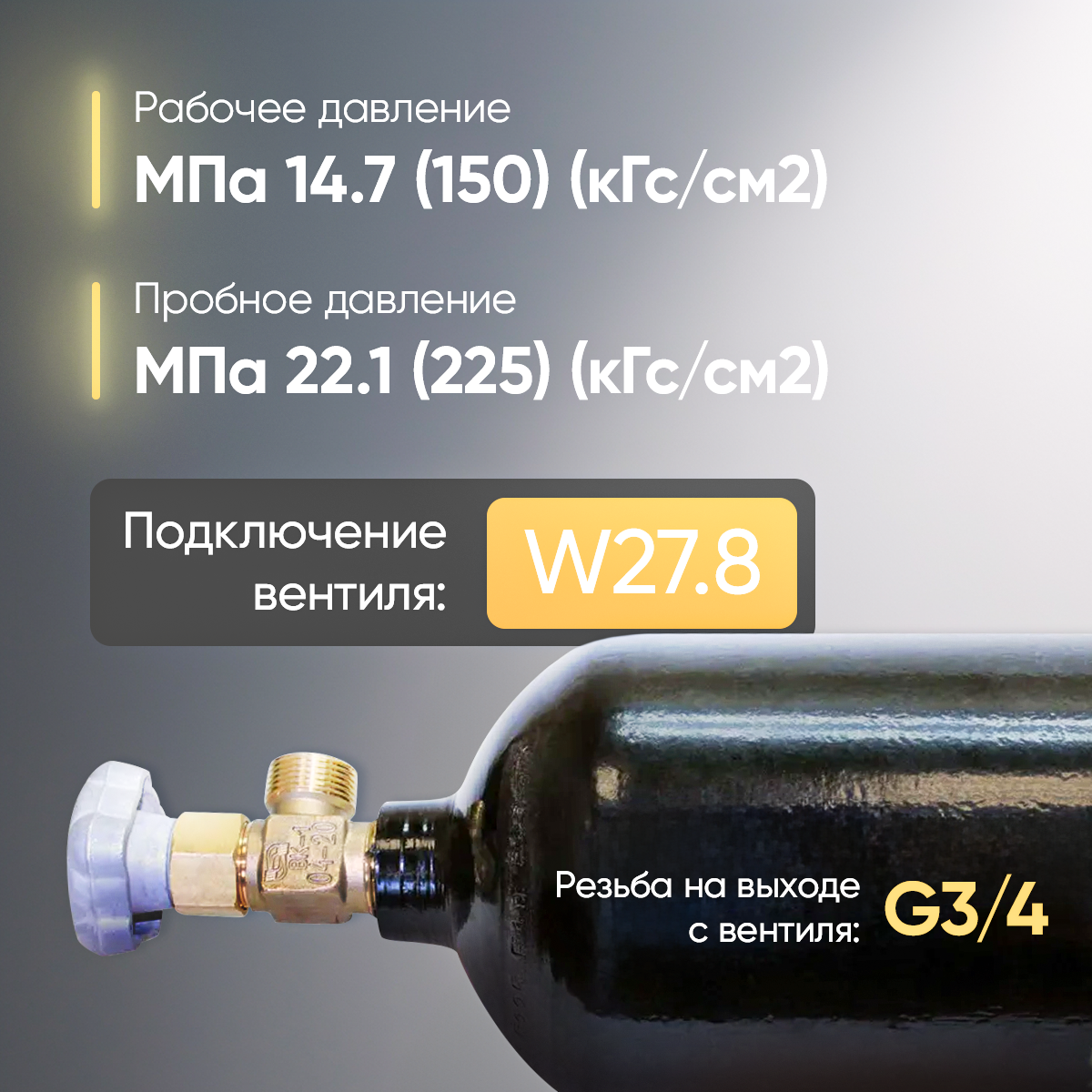| Дополнительная информация | плоское дно; резьба на выходе с вентиля G3/4; соответствует требованиям ГОСТ 949-73 и ПБ 03-576-03 |