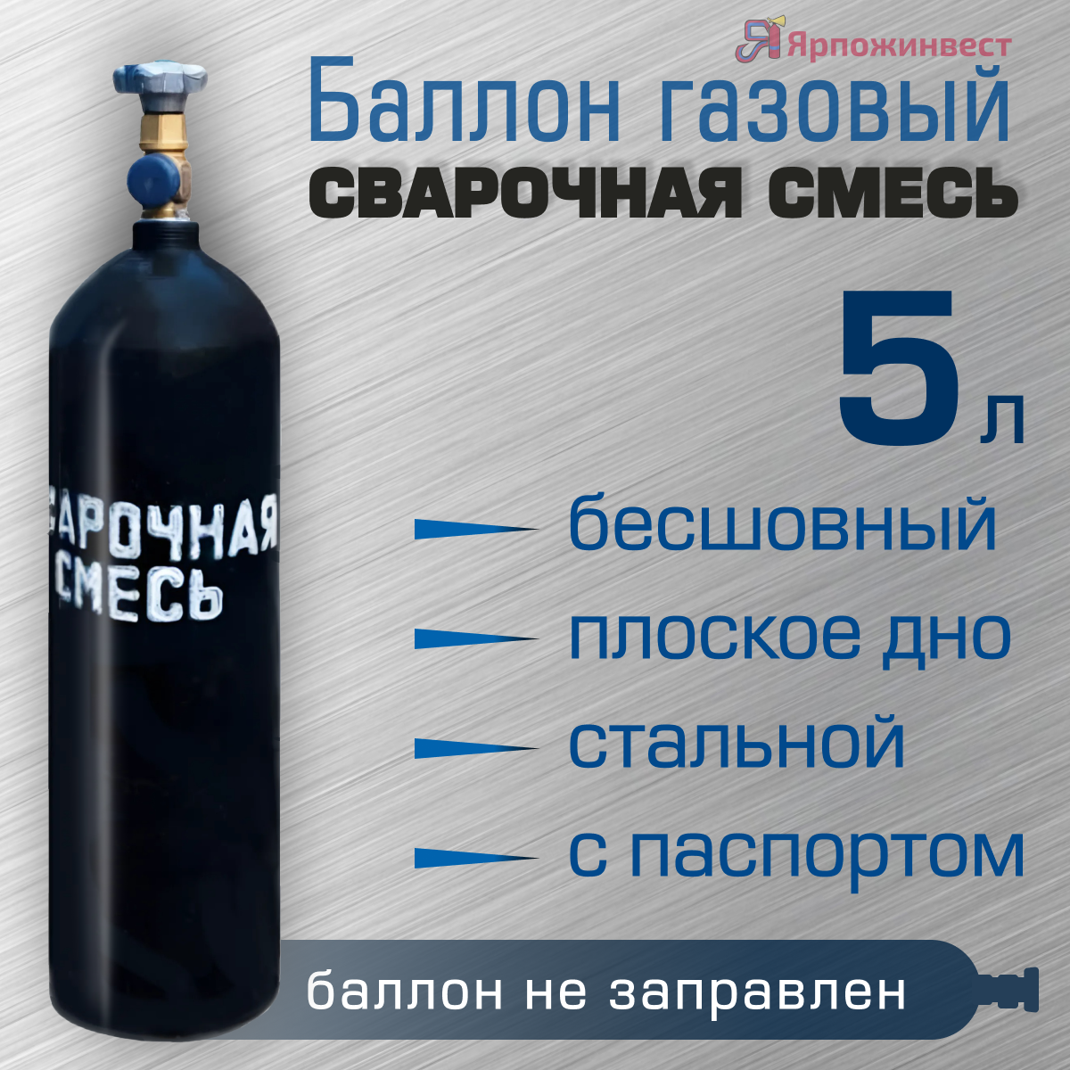 Баллон газовый сварочная смесь 5 л бесшовный ЯрпожИнвест, пустой