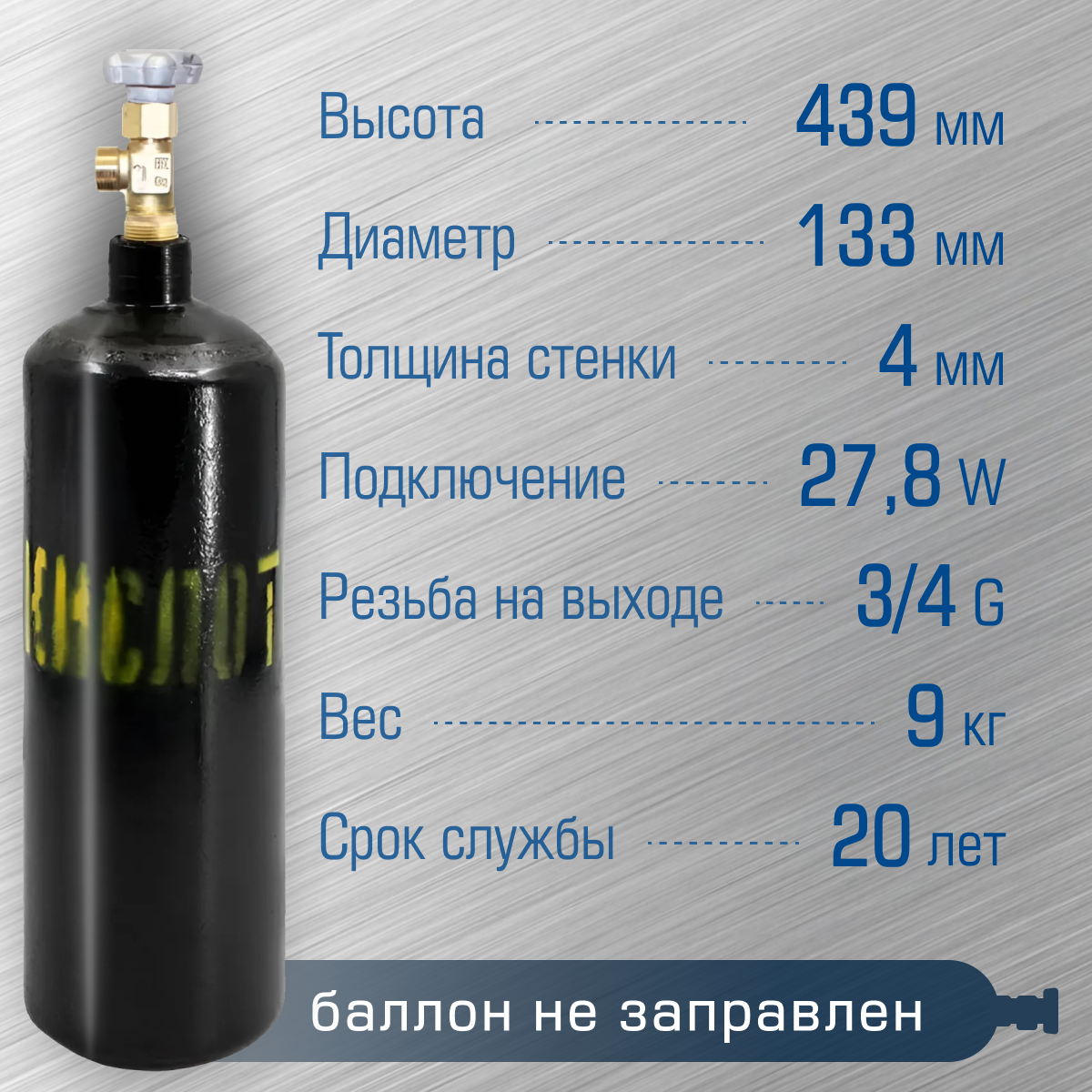 Баллон для газовой смеси (10 л; 133 мм; новый, пустой) Ярпожинвест 00000002599