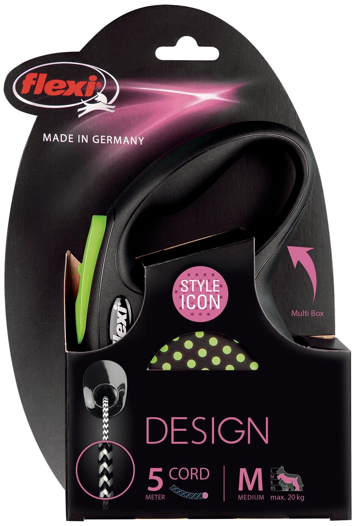 flexi рулетка Design М (до 20 кг) 5 м трос черный/зеленый горох