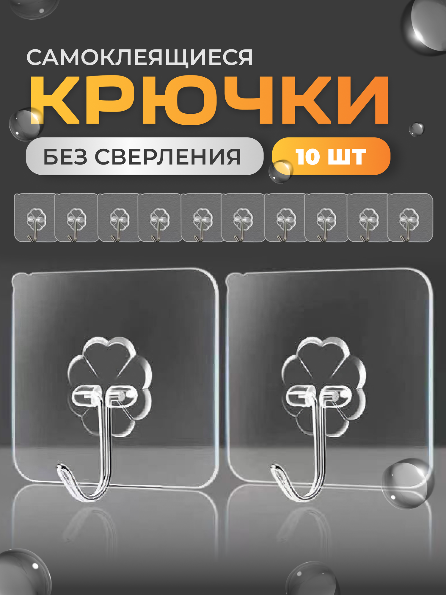 Крючки настенные самоклеющиеся прозрачные держатели без сверления стен на липучке, для ванной комнаты и кухни, 10шт интересное: