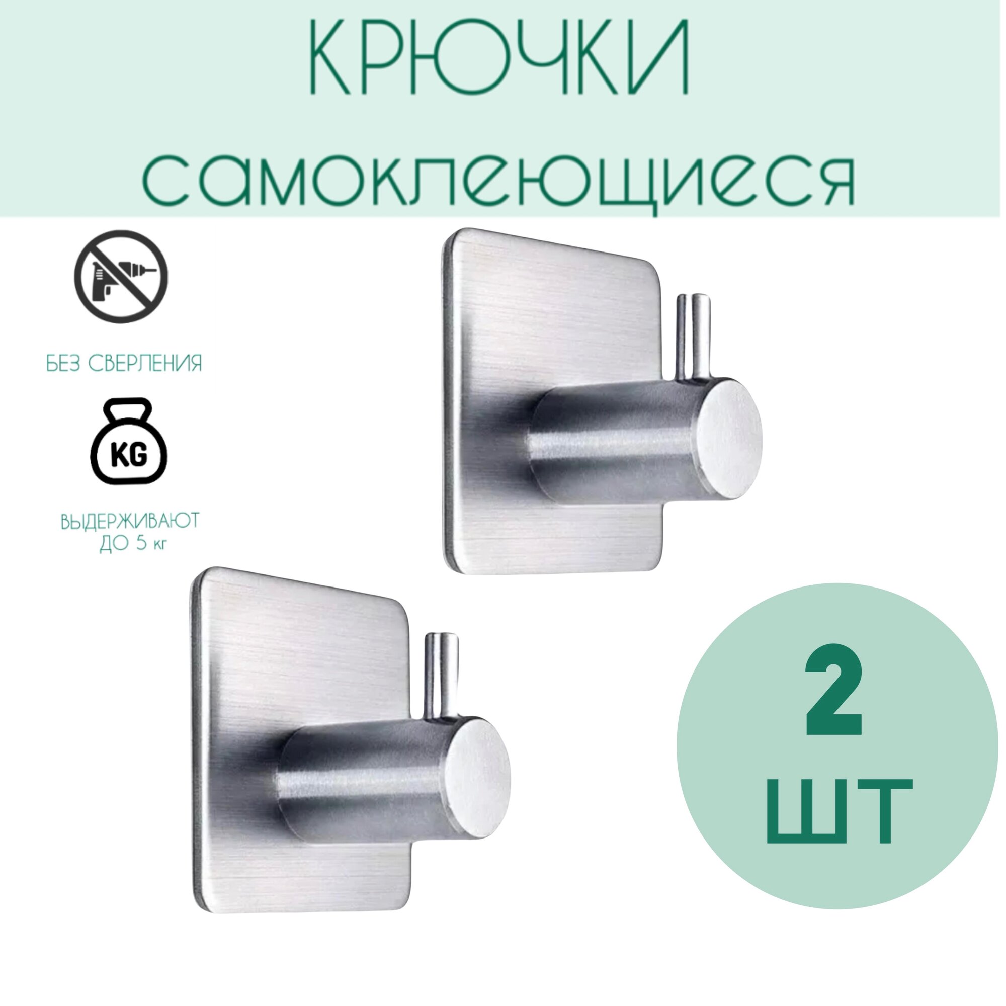Крючки 2 шт металлические самоклеящиеся без сверления круглые для кухни и ванной