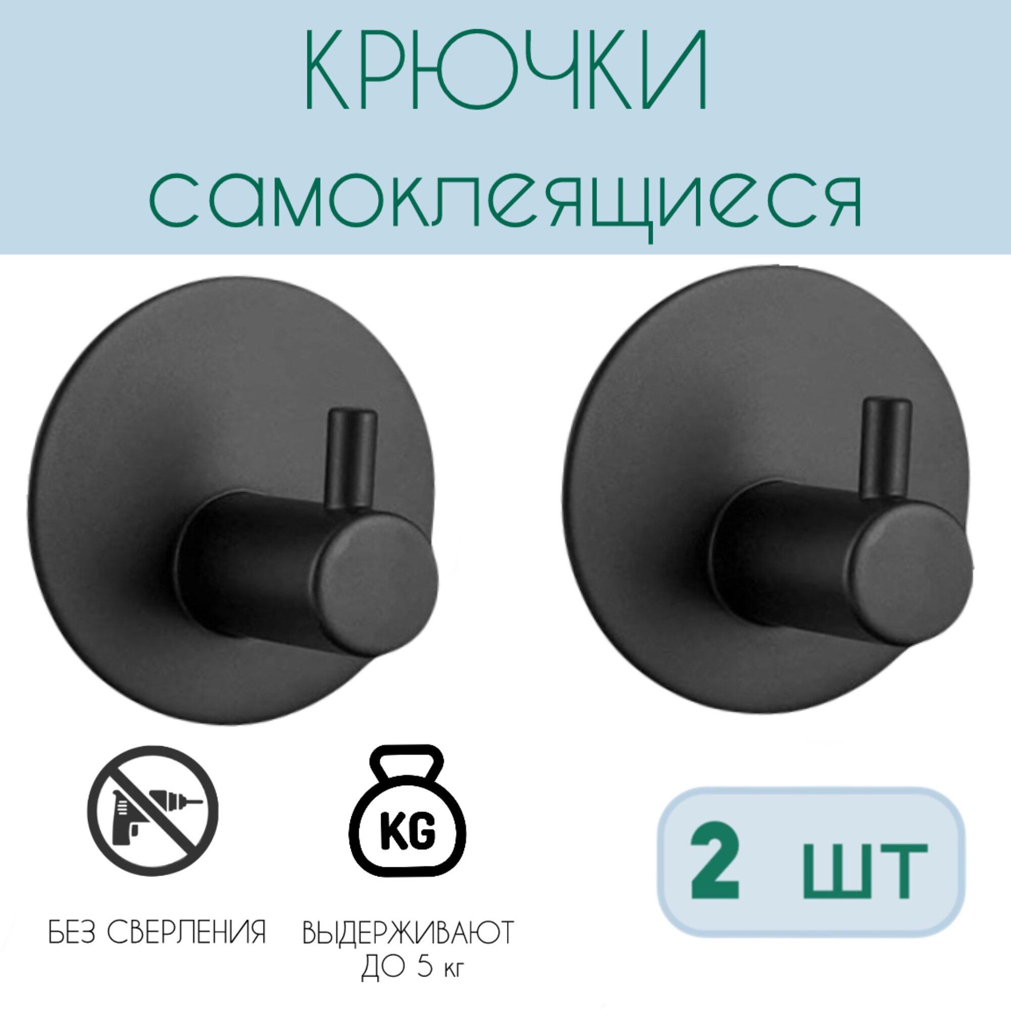 Крючки 2 шт металлические самоклеящиеся без сверления круглые черные для кухни и ванной интересное: