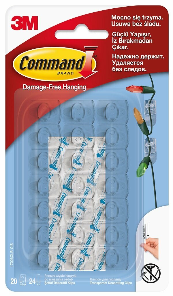 Купить Крючки для гирлянд самоклеящиеся Command прозрачные 20шт.