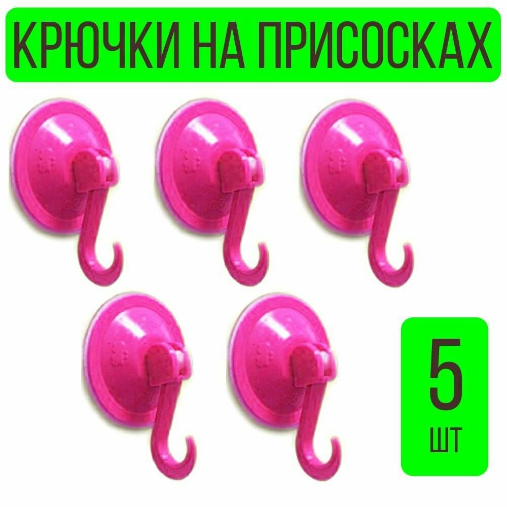 Крючки для ванной пластиковые на присосках, 5 шт., розовый интересное: