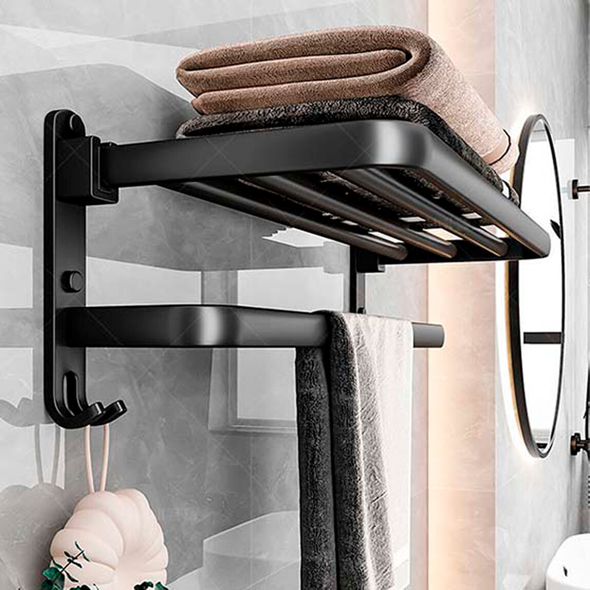 Держатель для полотенец халатов и мочалок в ванную комнату черный с полкой