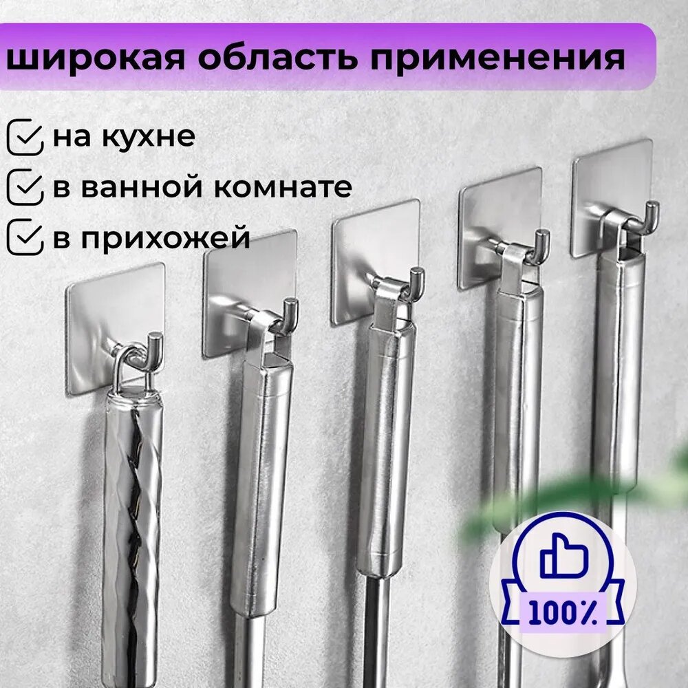 Крючки для ванной самоклеящиеся, 5 шт. без сверления/ нержавейка хром/ держатель настенный для кухни, прихожей / металлические вешалки для полотенец SHOPPING WHITE интересное: