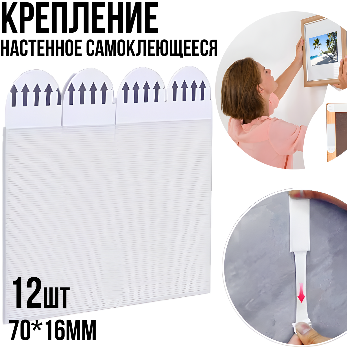 Купить Крепление для картины без сверления 12 пар/24 шт, размер 70/16 мм, крючки на липучке, полоски самоклейки на стену, крючок для картин без сверления / выдерживают до 4 кг