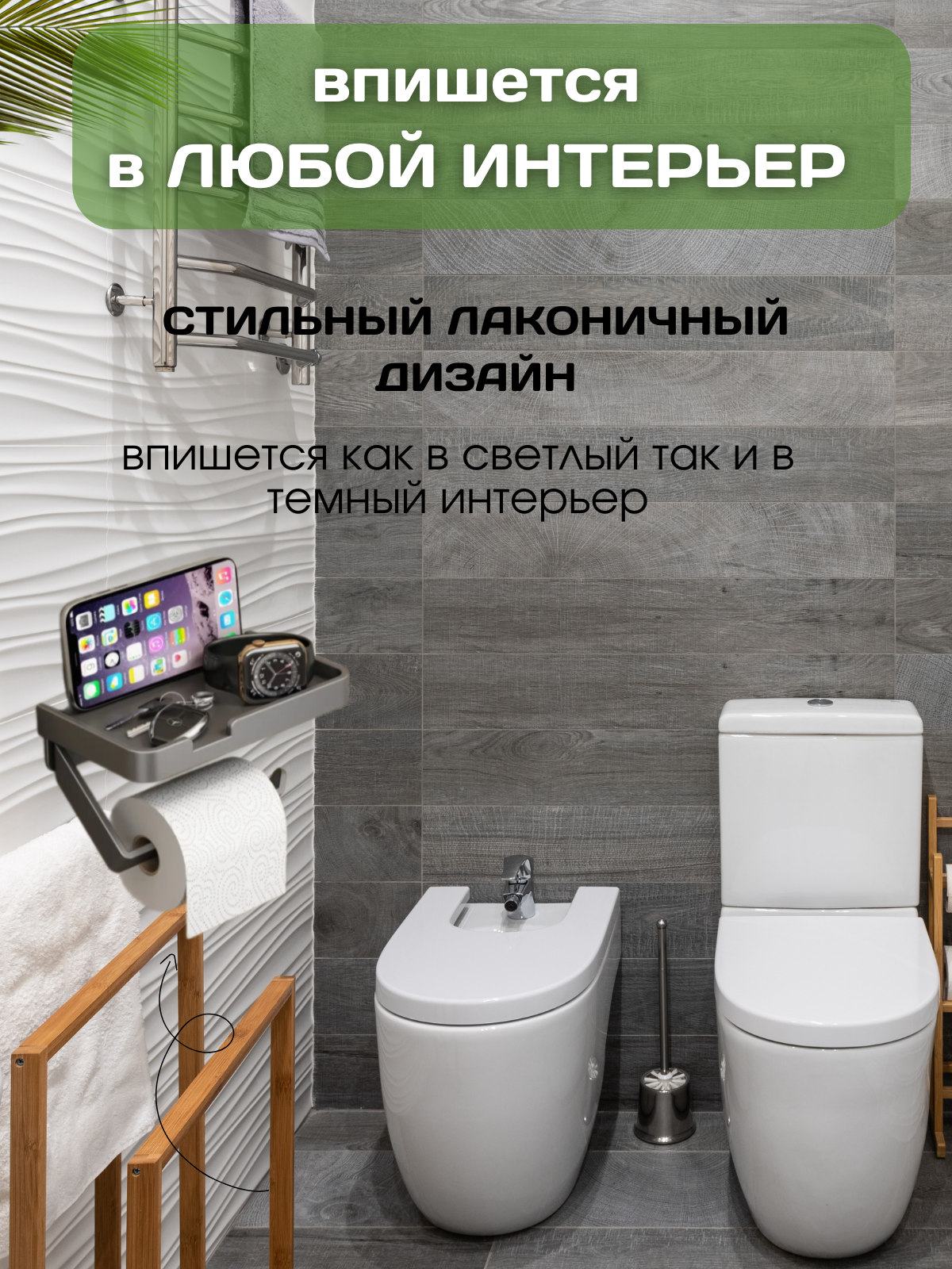 Держатель для туалетной бумаги, держатель с полочкой для телефона , подставка в ванную без сверления 1 шт графит интересное: