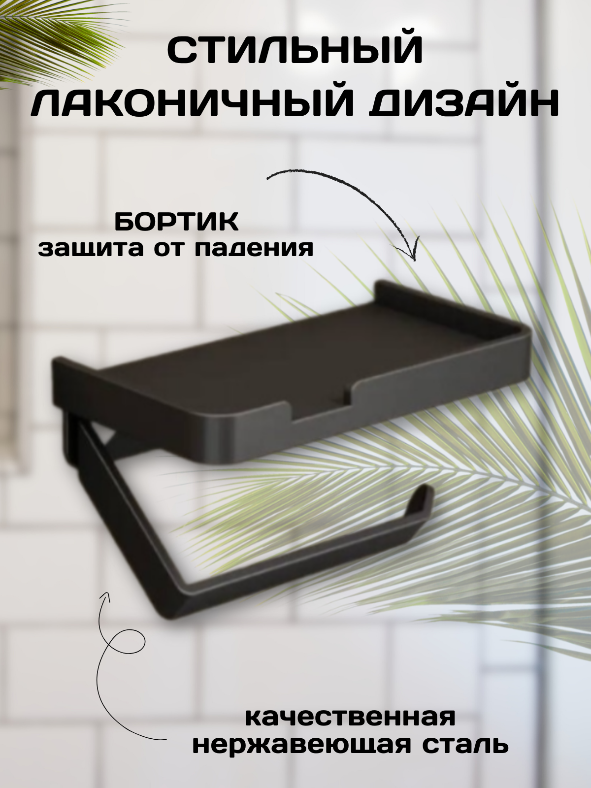 Держатель для туалетной бумаги, держатель с полочкой для телефона , подставка в ванную без сверления 1 шт черный интересное: