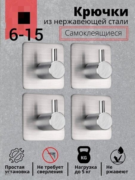 Крючки для ванной самоклеящиеся, 4 шт серебристые интересное: