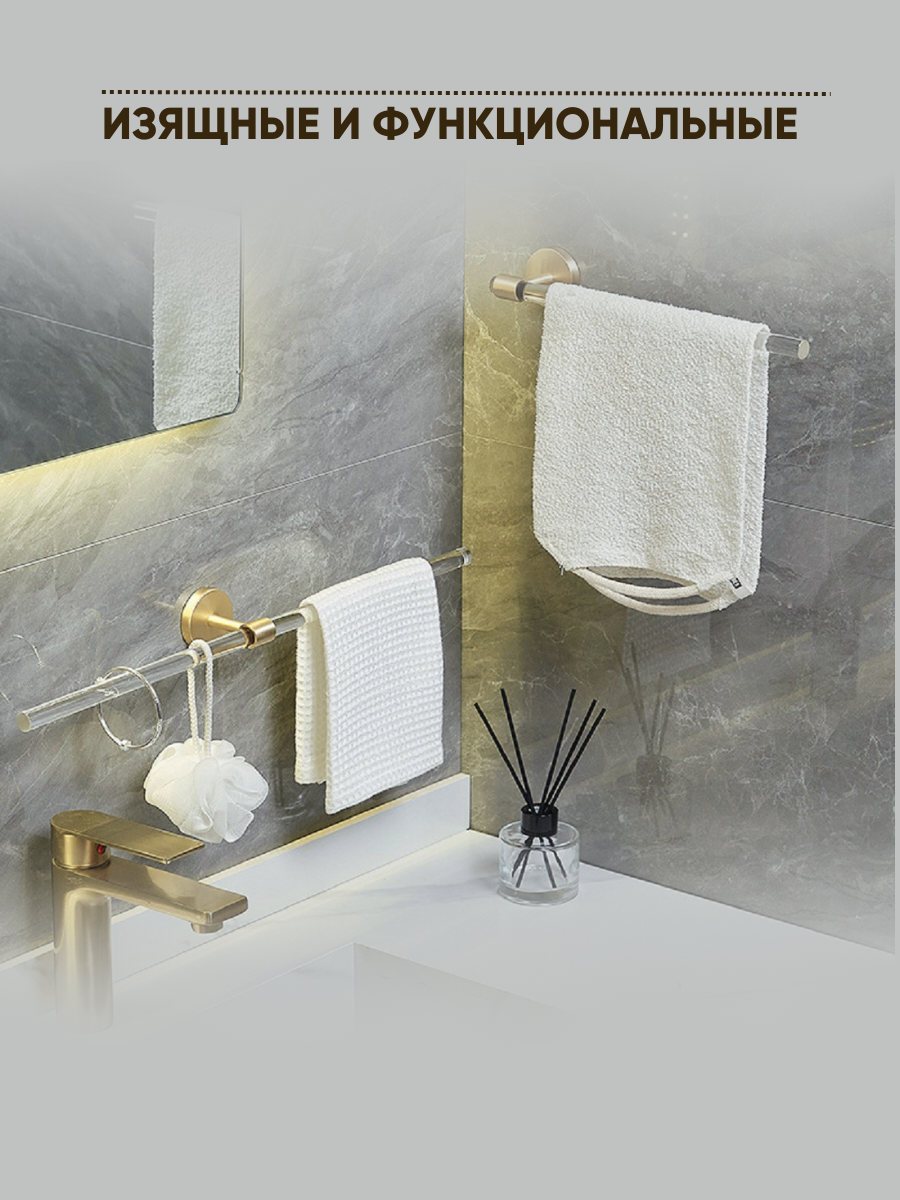 Держатель для ванной односторонний / вешалка для полотенец золото 30 см "Glow" интересное: