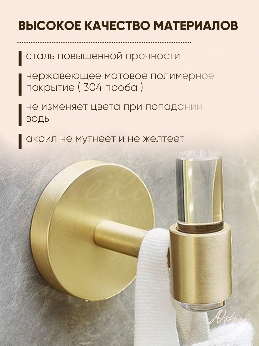 Держатель для ванной двухсторонний/ вешалка для полотенец золото 40 см "Glow"