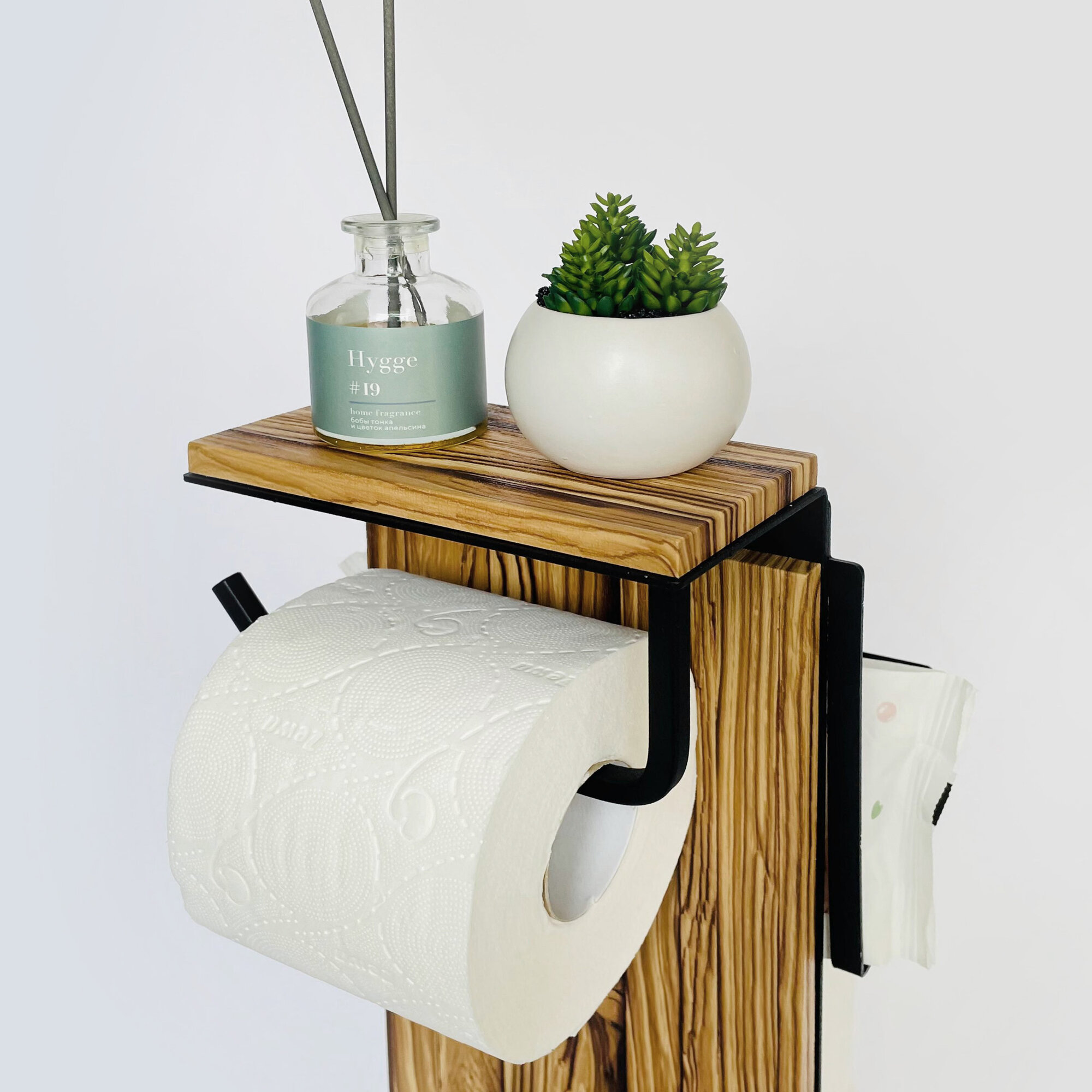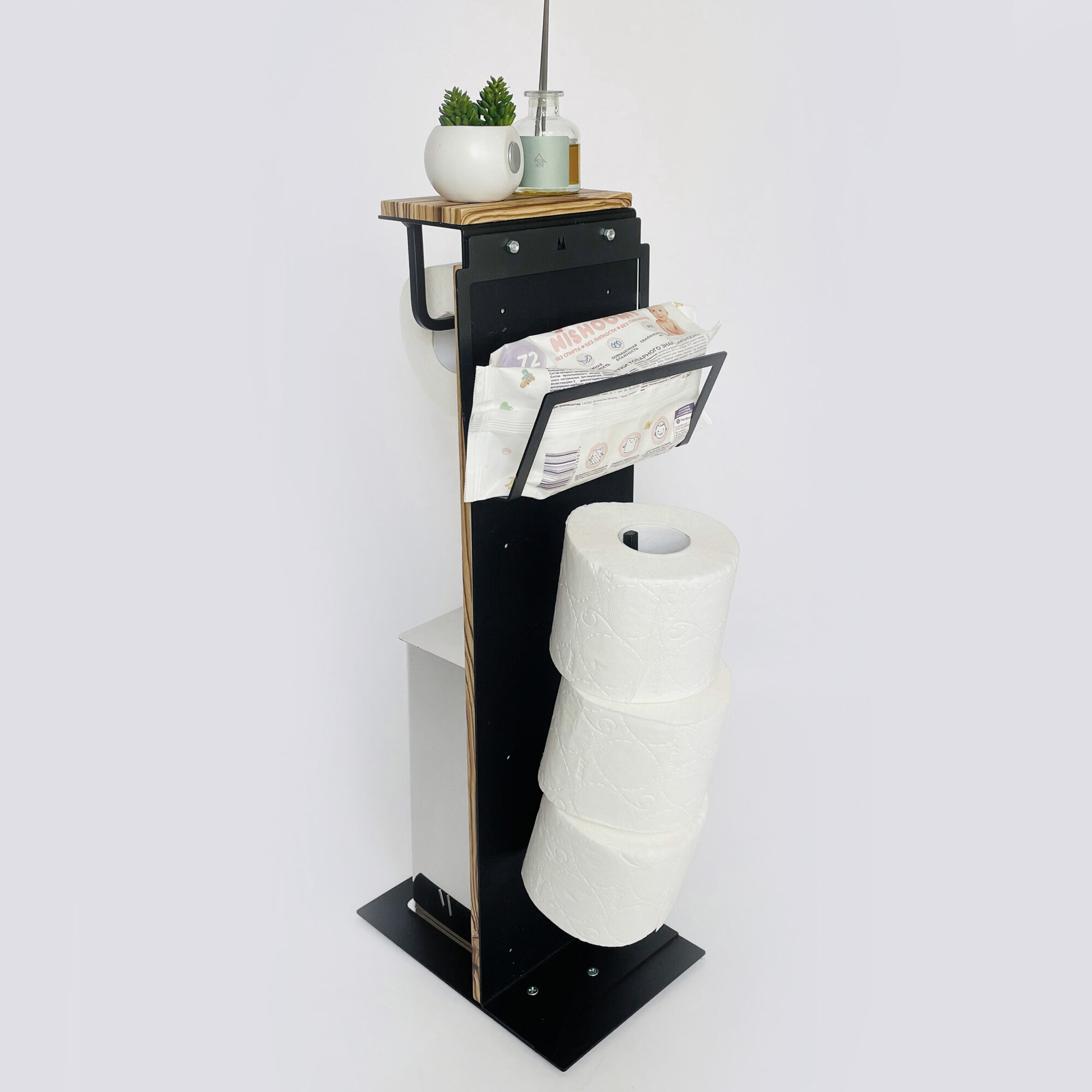 Держатель стойка для туалетной бумаги напольный Molinardi creativo "Дуб белёный" на черном "Сиано"