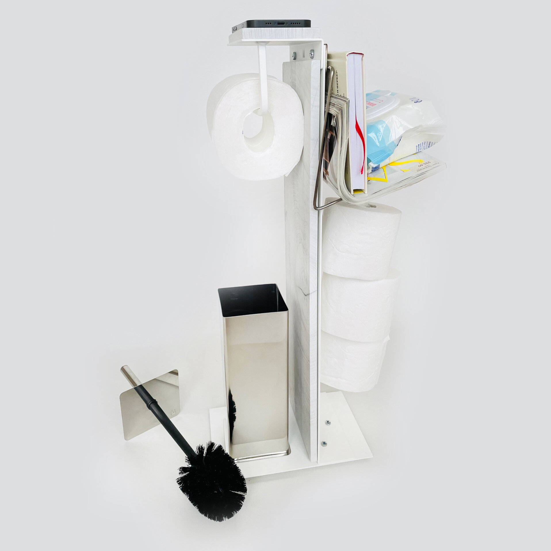 Держатель стойка для туалетной бумаги напольный Molinardi creativo "Дуб белёный" на белом "Сиано"