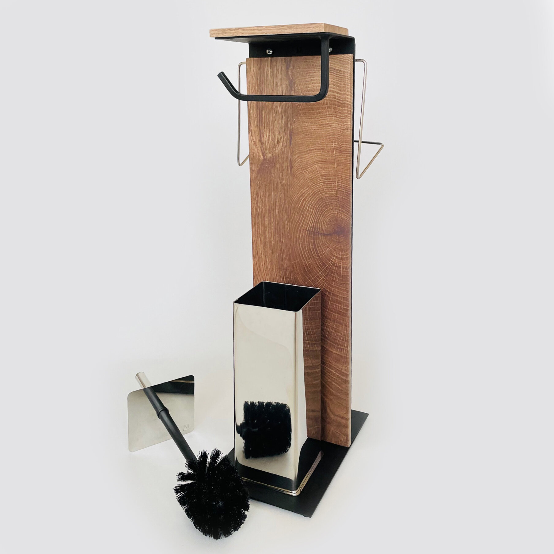 Держатель стойка для туалетной бумаги напольный Molinardi creativo "Дуб белёный" на черном "Сиано"