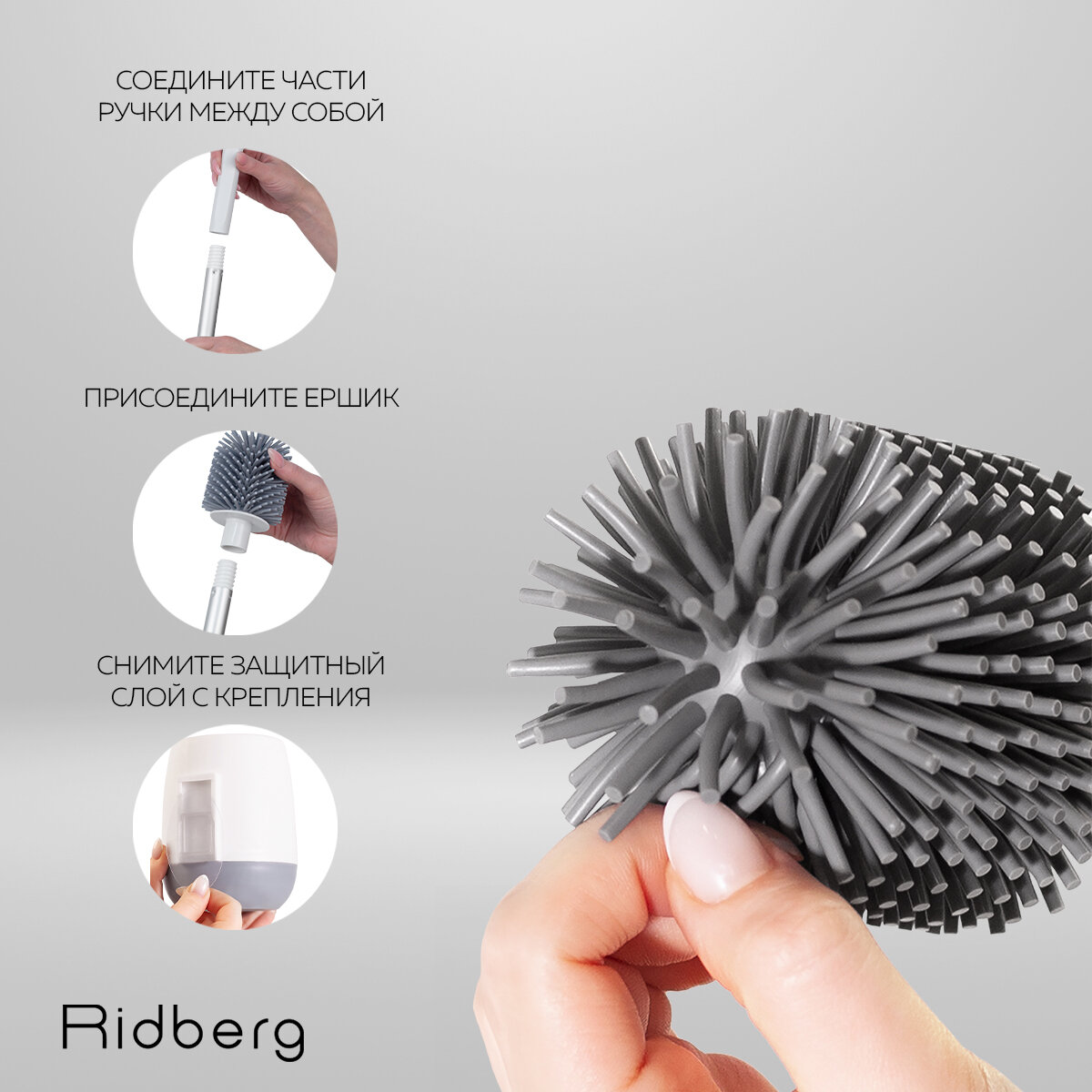 Купить Ершик для унитаза силиконовый Ridberg Toilet Brush YYTB-001 (White/Grey)