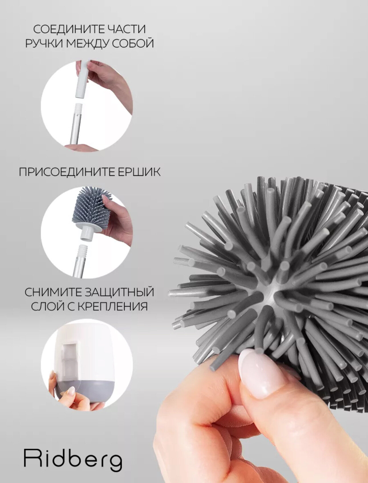 Ершик для унитаза силиконовый Ridberg Toilet Brush YYTB-001 (White/Grey)