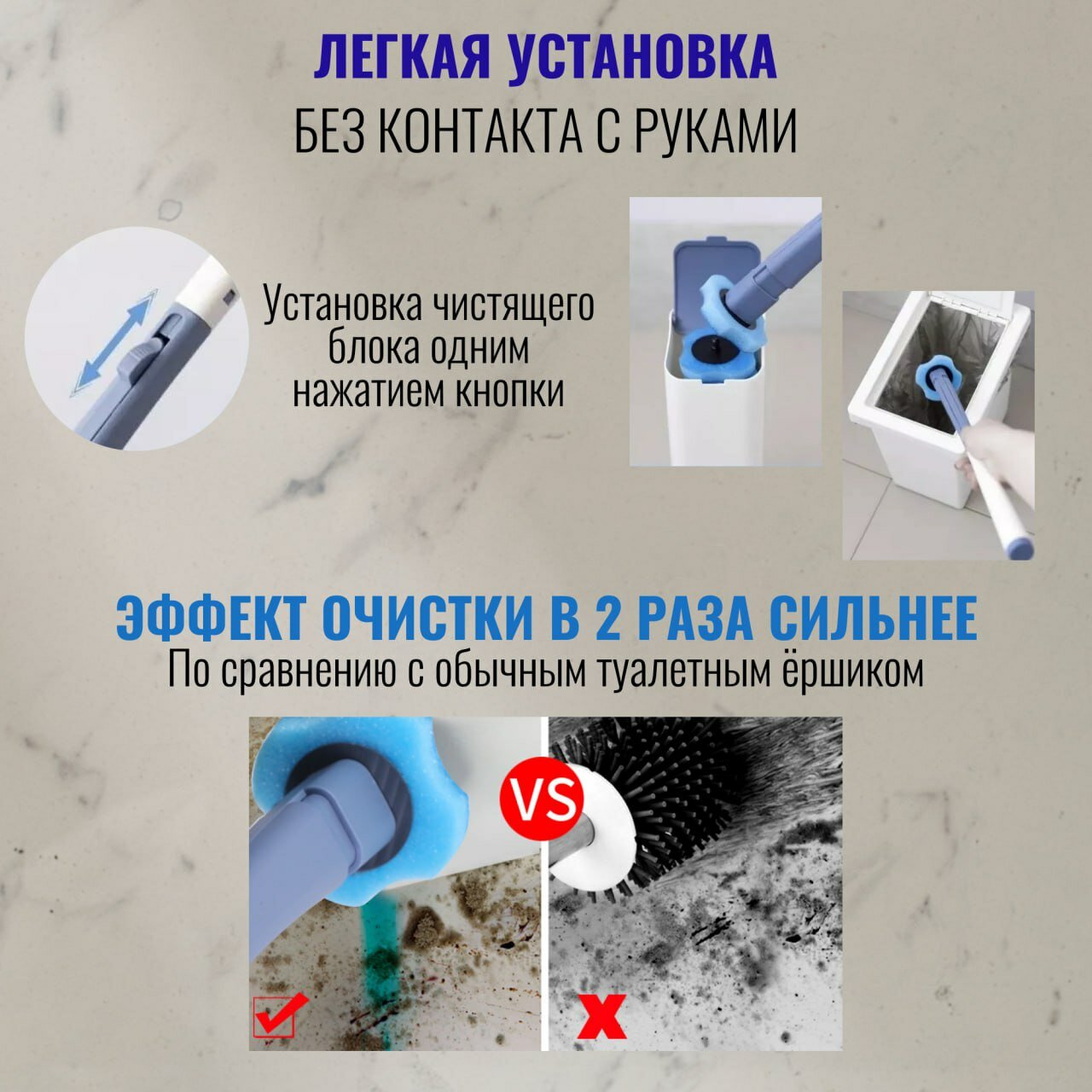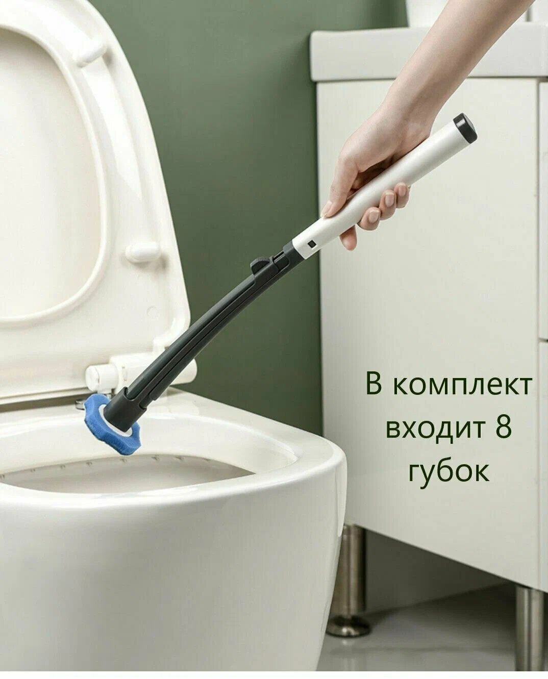 Бесконтактный ершик для унитаза напольный со сменными насадками/TOHOMU/антибактериальный/белый