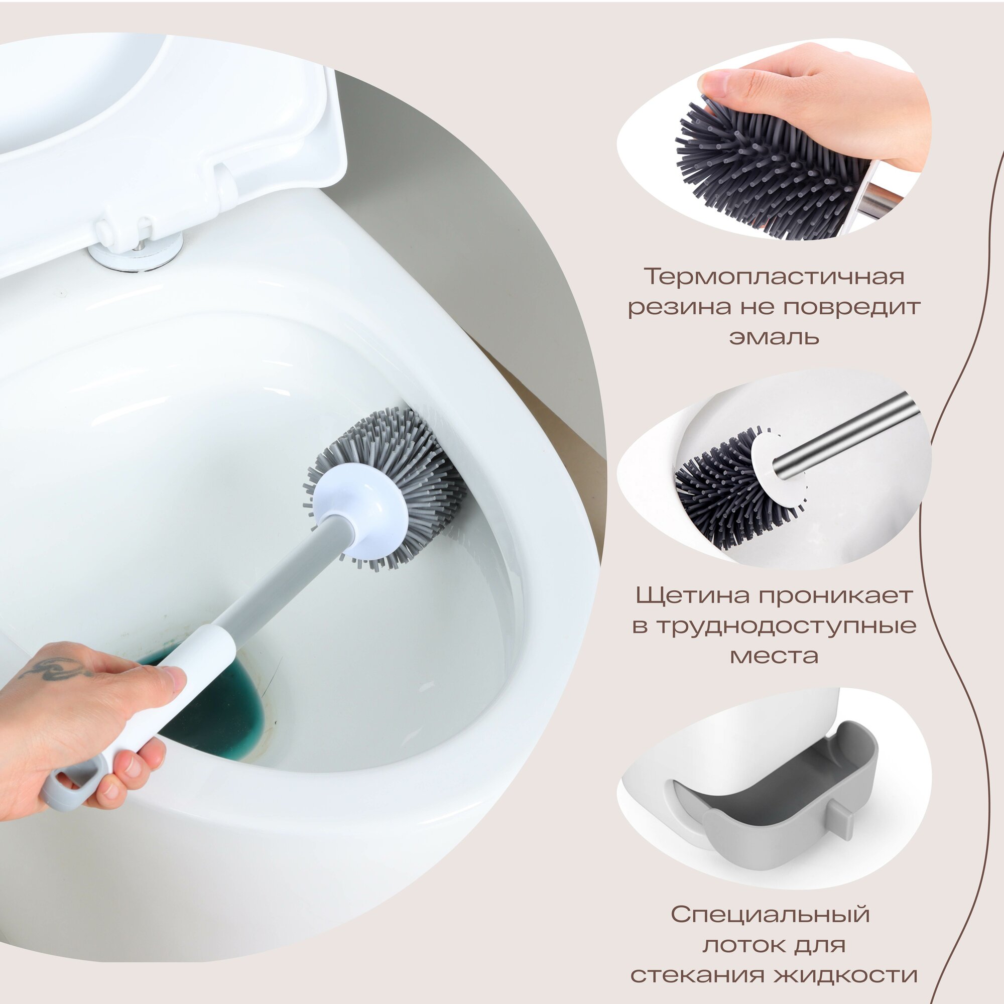 Ершик для унитаза силиконовый, настенный / напольный, антибактериальный, TOHOMU/TOPOTO / щетка для туалета с креплением, с квадратной подставкой интересное: