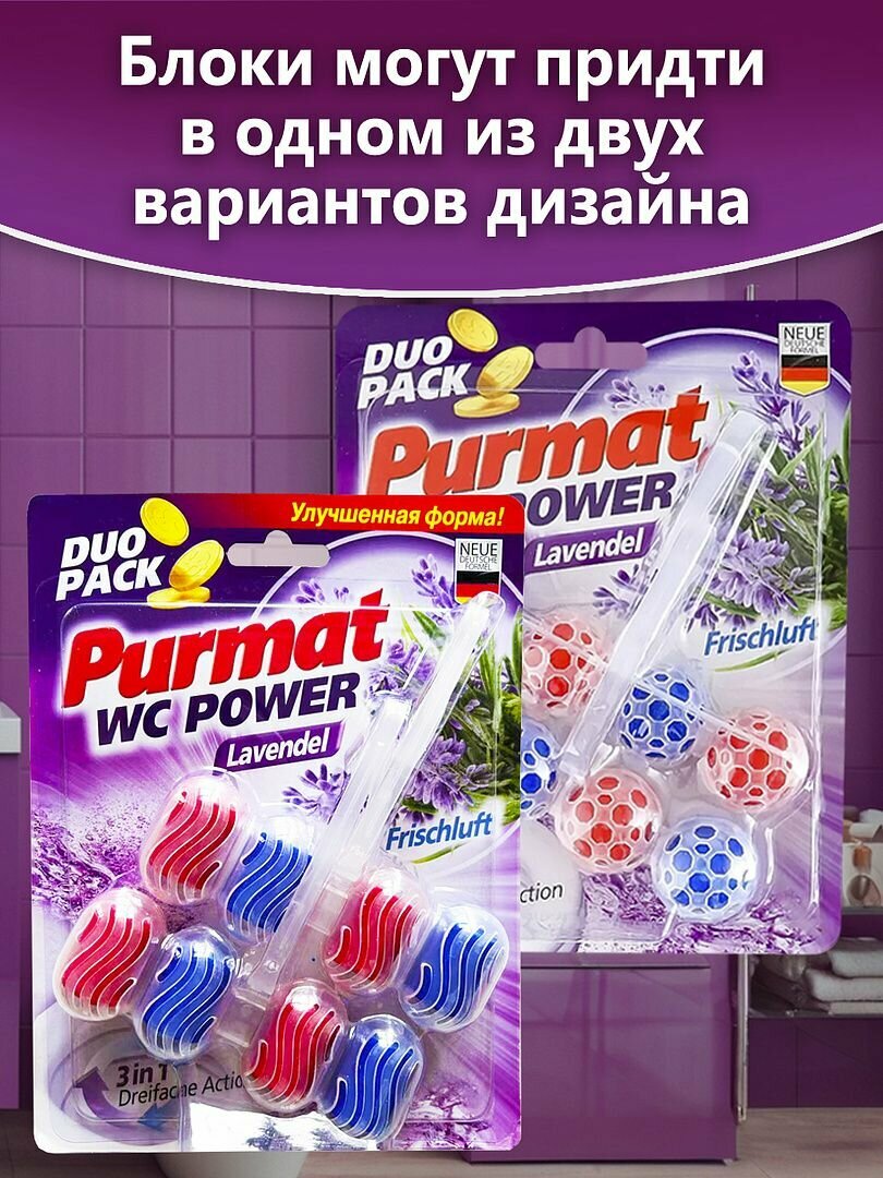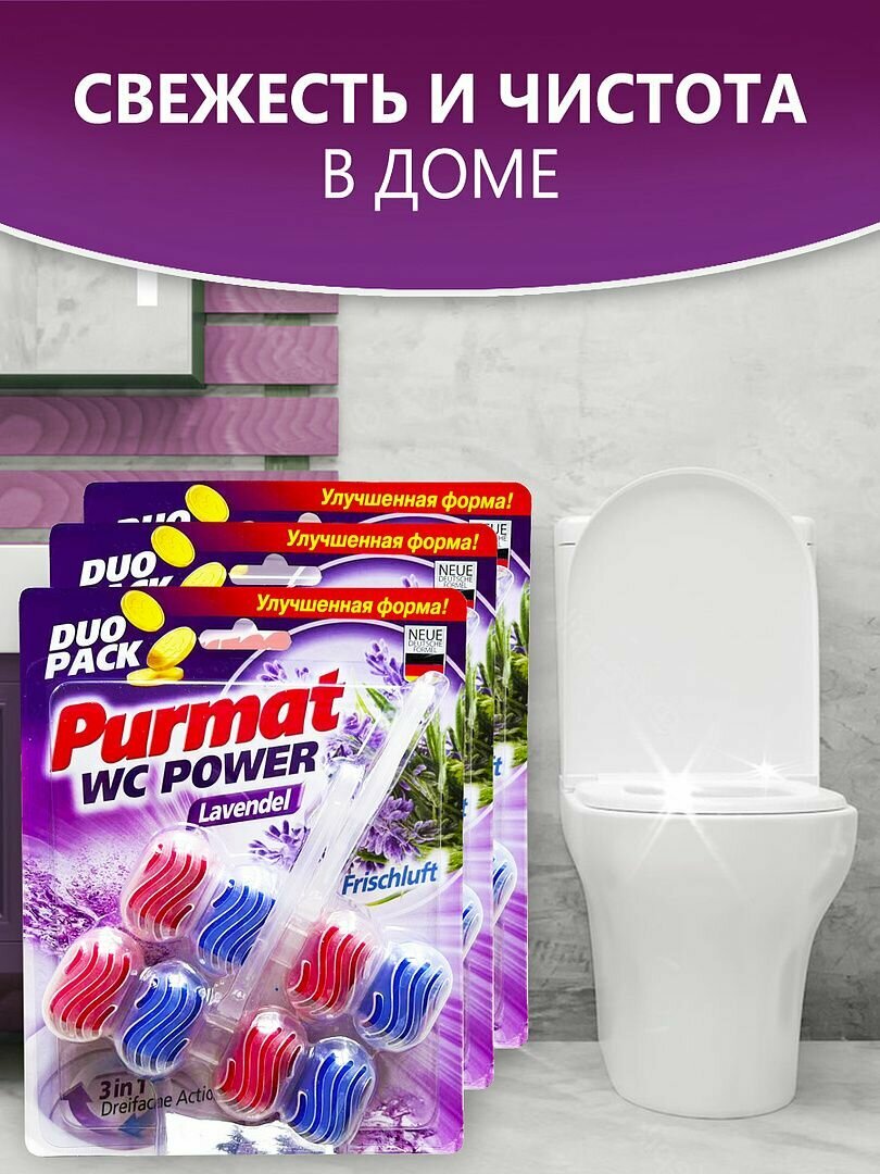 Туалетный блок для чистки унитаза Purmat Лаванда, гигиенические таблетки (шарики), 6 сменных арома-блоков по 50 гр, освежитель подвесной в туалет от налета, 3 пачки по 2 блока интересное: