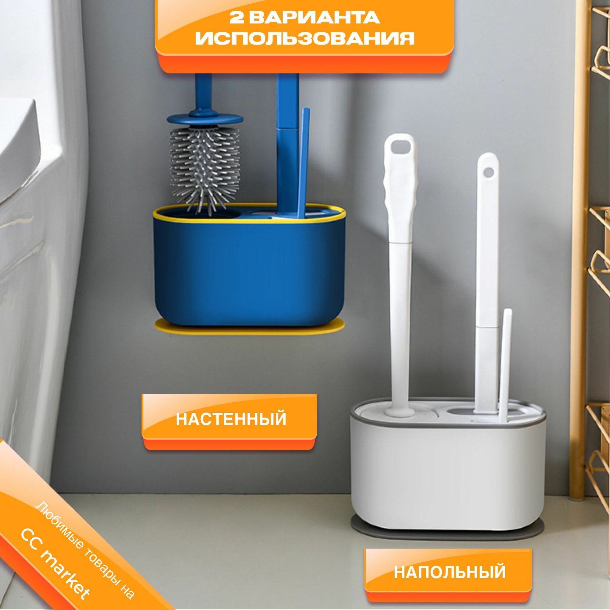 Купить Ёршик для унитаза LIKEFORT, туалета, силиконовый 3в1, с щеткой для детальной чистки.