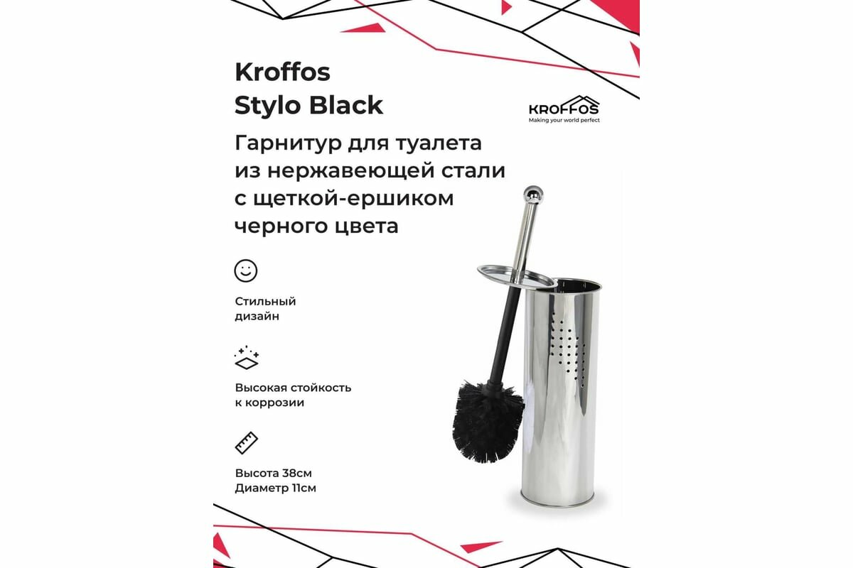 Ершик KROFFOS Stylo black для туалета с подставкой и крышкой из металла интересное: