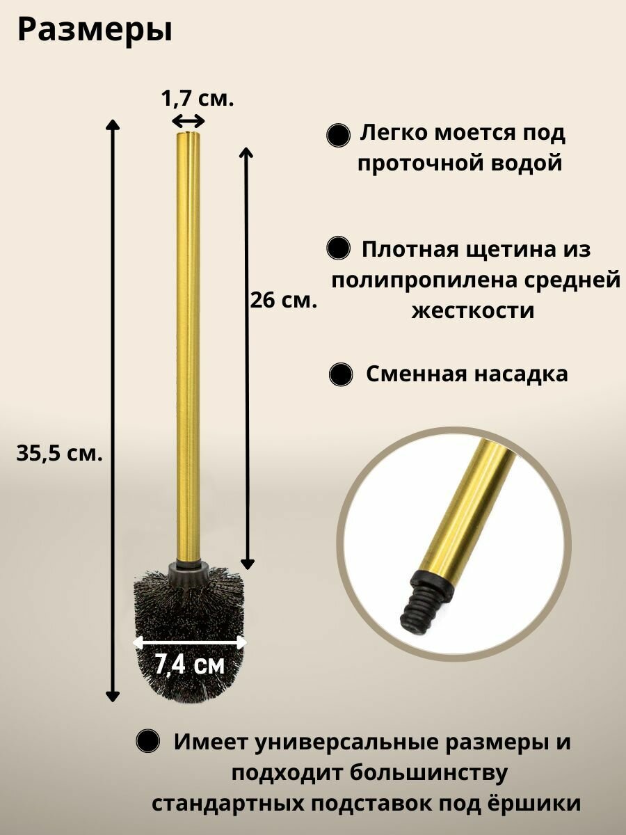 Купить Щетка для ерша с ручкой BATH PLUS сменный ёрш черный с золотой ручкой